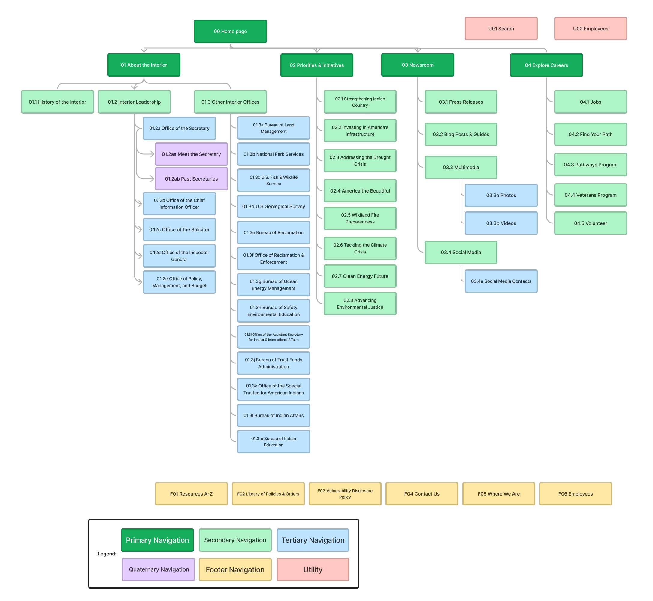 The DoI’s website needs to communicate a lot of information in an accessible way, but the current site layout and organization of information is immature. Some major issues are: